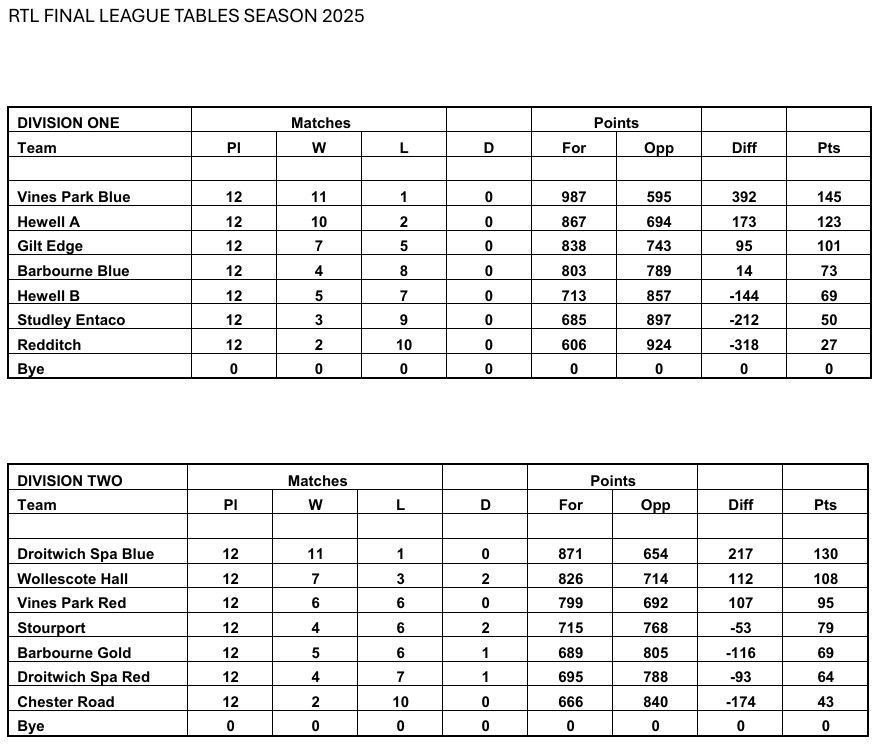 Redditch Triples League Matches 2025